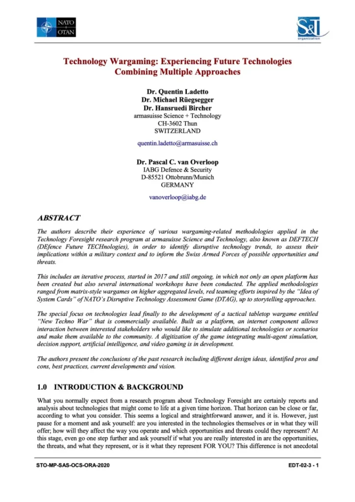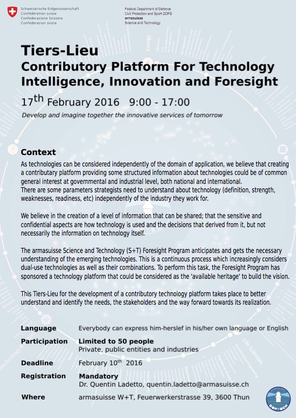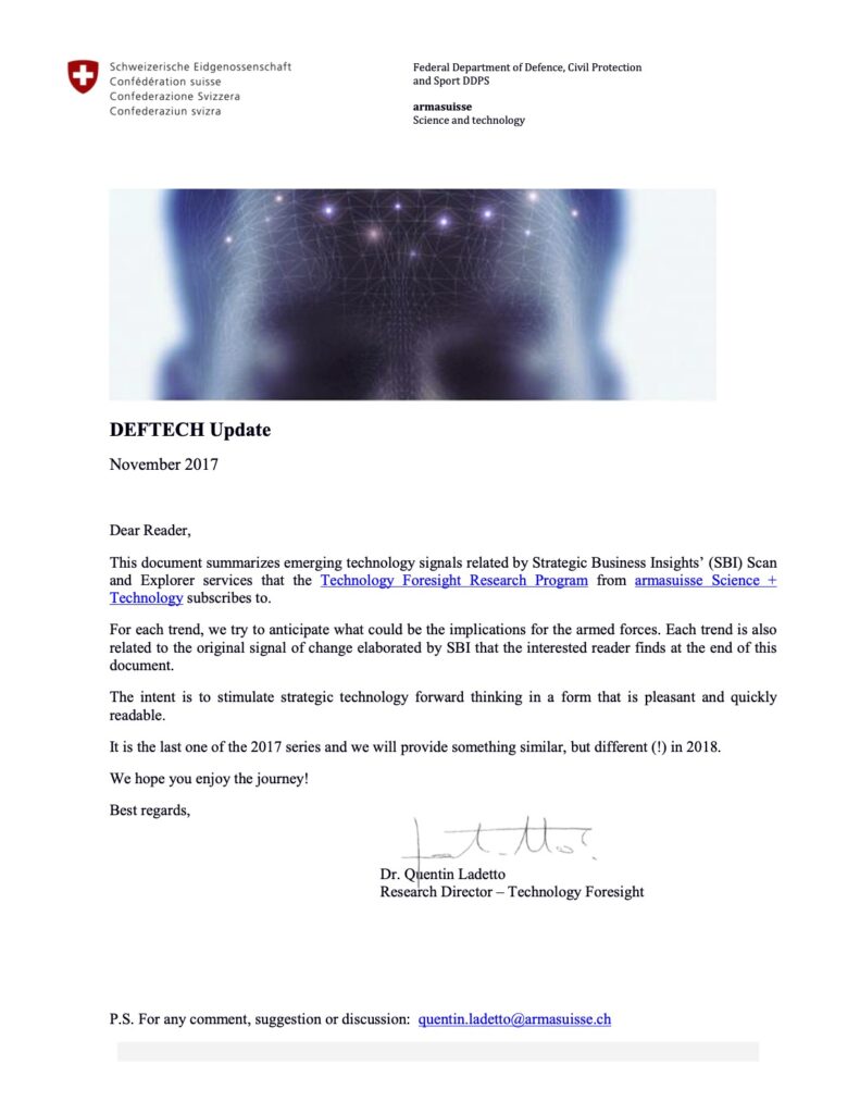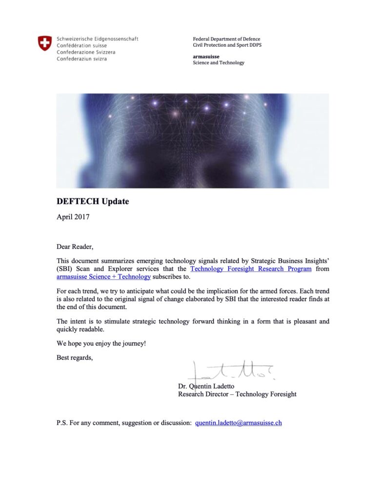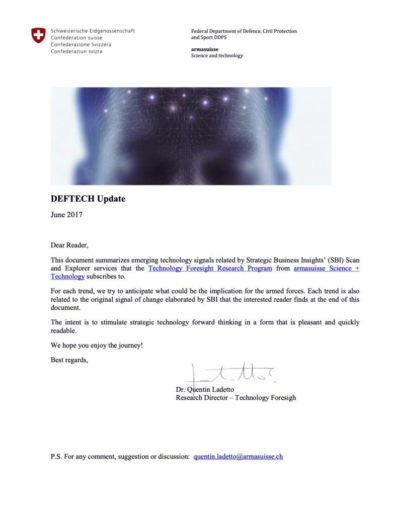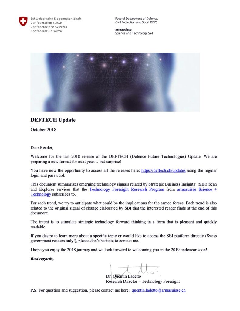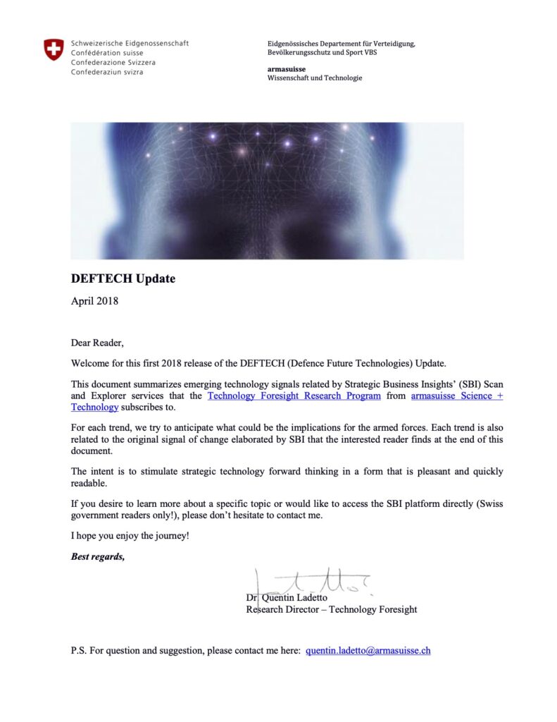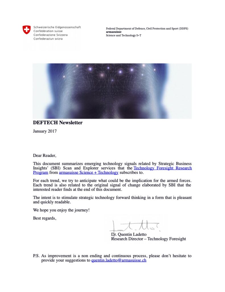 Historique du programme de prospective technologique du Département fédéral de la défense, de la protection de la population et des sports (DDPS)