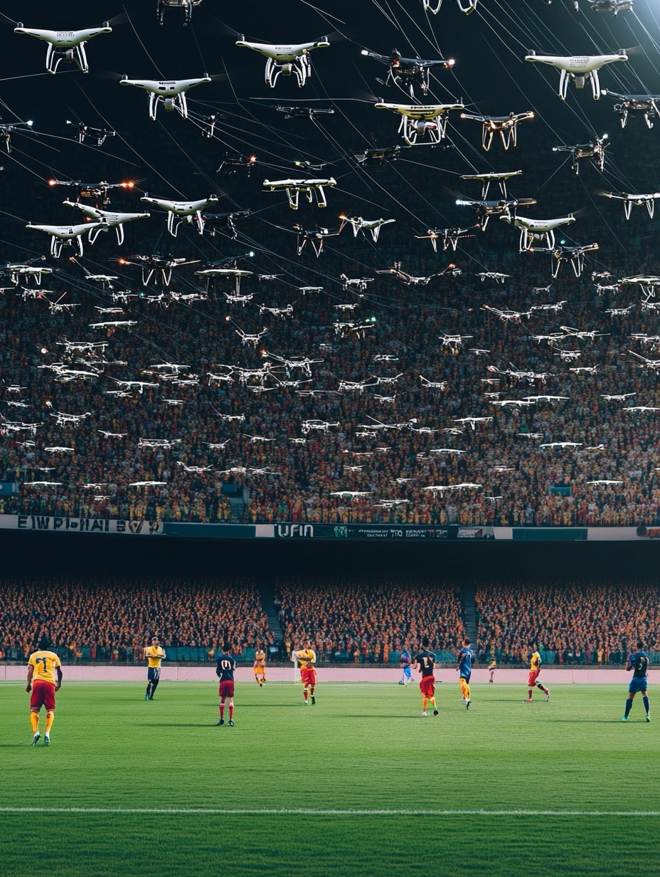 Le grain de sable, c’est l’ola. Les Yodars ont eu l’idée de synchroniser tous les drones avec le match. Les drones montent et descendent à chaque but.