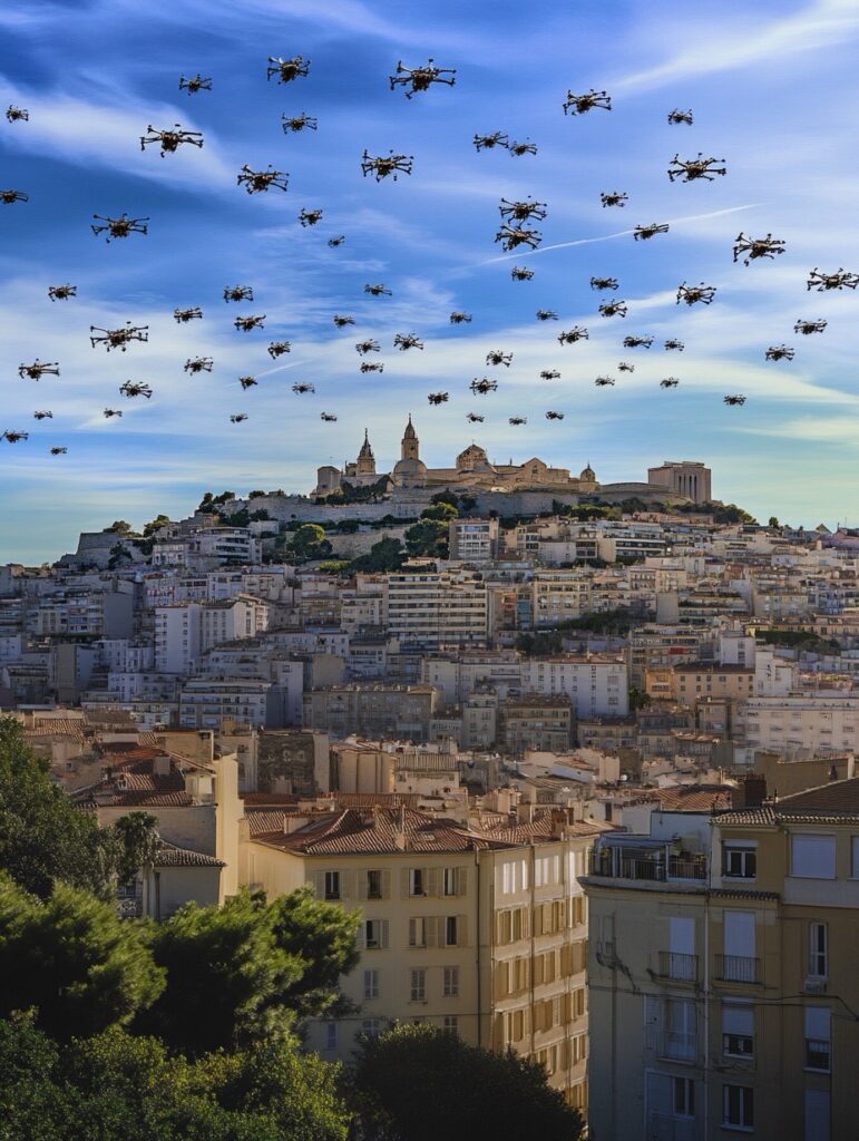 Dame Degain sort de sa torpeur pour vanter Marseille comme laboratoire d’innovation. Aux écolos qui s’inquiètent des oiseaux perturbés, elle sert son éternel « C’est intéressant ! ». Elle plaisante aussi sur la mélodie des drones-guêpe qui vont perturber les bouffeurs de graines, amateurs de silence. Et oui, nous n’avons pas le monopole de son mépris !