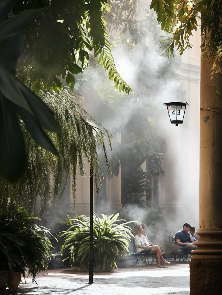 Dans un quartier de Malaga, les habitants anticipent les canicules extrêmes avec des passages couverts, des brumisateurs collectifs et la végétalisation de tous les espaces communs.