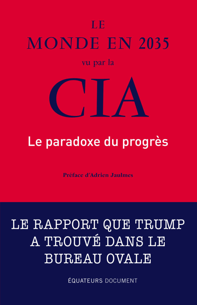 Nos recherches nous amènent rapidement à déterrer le sixième rapport du Conseil national du renseignement américain, publié en 2017 dans sa version française (éditions des Équateurs) sous le titre Le monde en 2035 vu par la CIA : Le paradoxe du progrès.