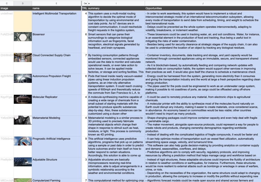 L’expérience la plus révélatrice est celle réalisée avec la société envisioning. Toutes les informations de chaque thème traité tiennent dans les différentes colonnes d’une feuille Excel. Le rendu sous forme de radar dynamique rend la recherche d’information nettement plus facile d’accès et stimulante.