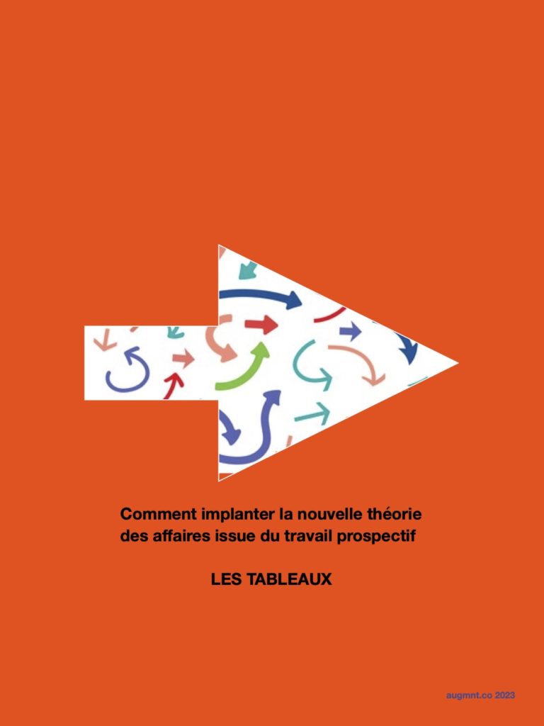 Que votre question soit ‘Notre Théorie des Affaires pour 2035” ou simplement “Notre Entreprise en 2035” et que vous soyez dirigeant ou un intervenant prospectiviste, je suis convaincu que ces outils vous aideront considérablement puisqu’ils sont basés sur les premiers principes et sont issus de plusieurs années de travail et observation dans un contexte où ma motivation principale était centrée sur comment mieux aider le client tout en lui rendant la tâche plus facile.