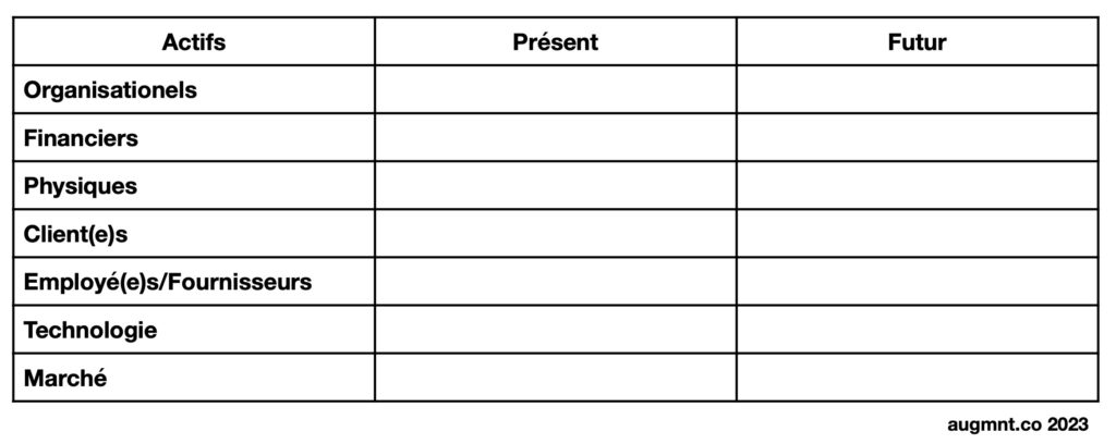 Lorsque les dirigeants d’organisations et leurs équipes se penchent sur le modèle d’affaires, il est conseillé de prendre un peu de temps afin de se rafraîchir la mémoire sur ce que sont les actifs de l’organisation, tous les actifs, qu’ils soient tangibles ou non, comptés ou non, en propriété ou non (actifs de fournisseurs par exemple).