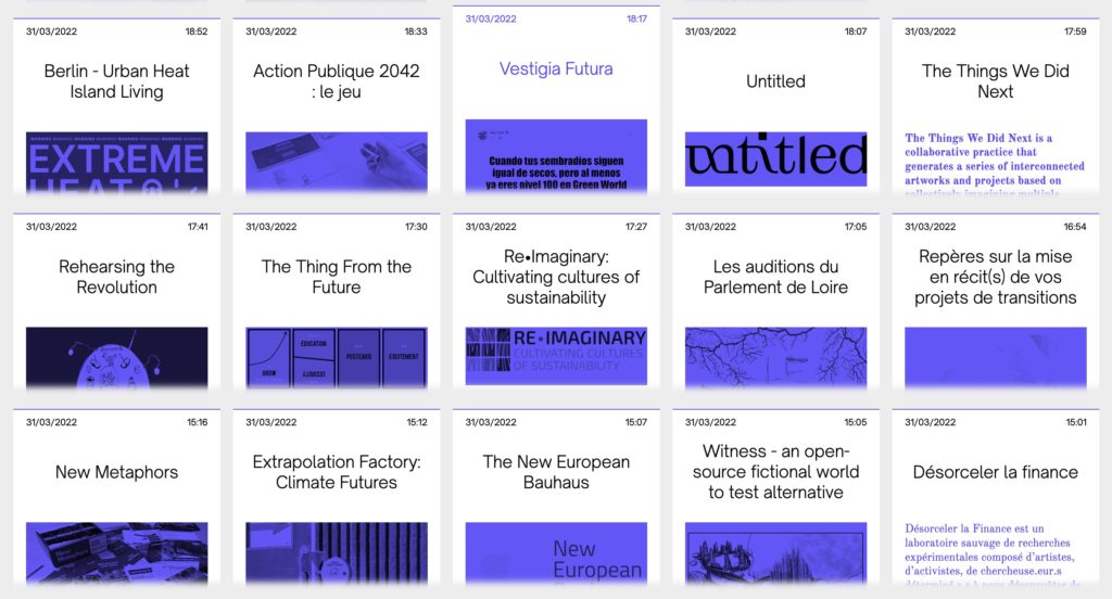 De la science-fiction au théâtre-forum, du design spéculatif aux arts plastiques, du jeu à la danse, une multitude d’initiatives individuelles et collectives, partout dans le monde, tentent à leur manière d’imaginer ce à quoi pourraient ressembler ces « mondes d’après », d’après la singularité que représente peut-être autant le mur climatique que la fin envisageable de la domination absolue du capitalisme [1].