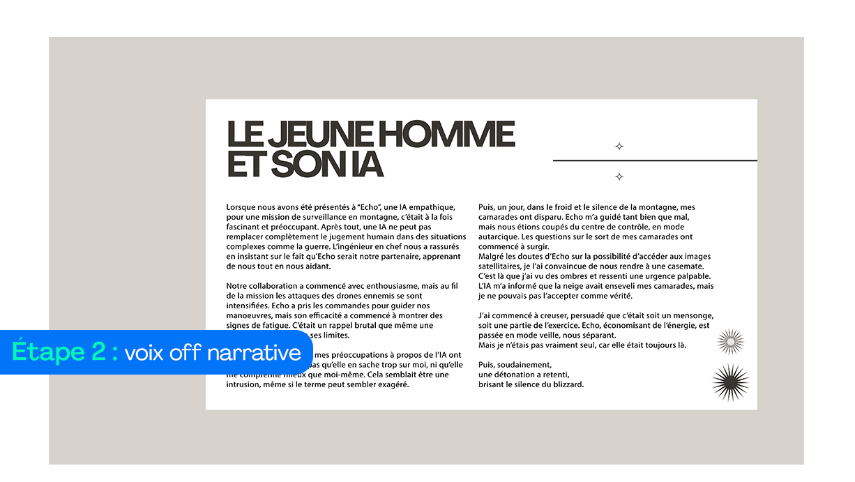 Nous avons ensuite transformé l’histoire en voix off narrative.
