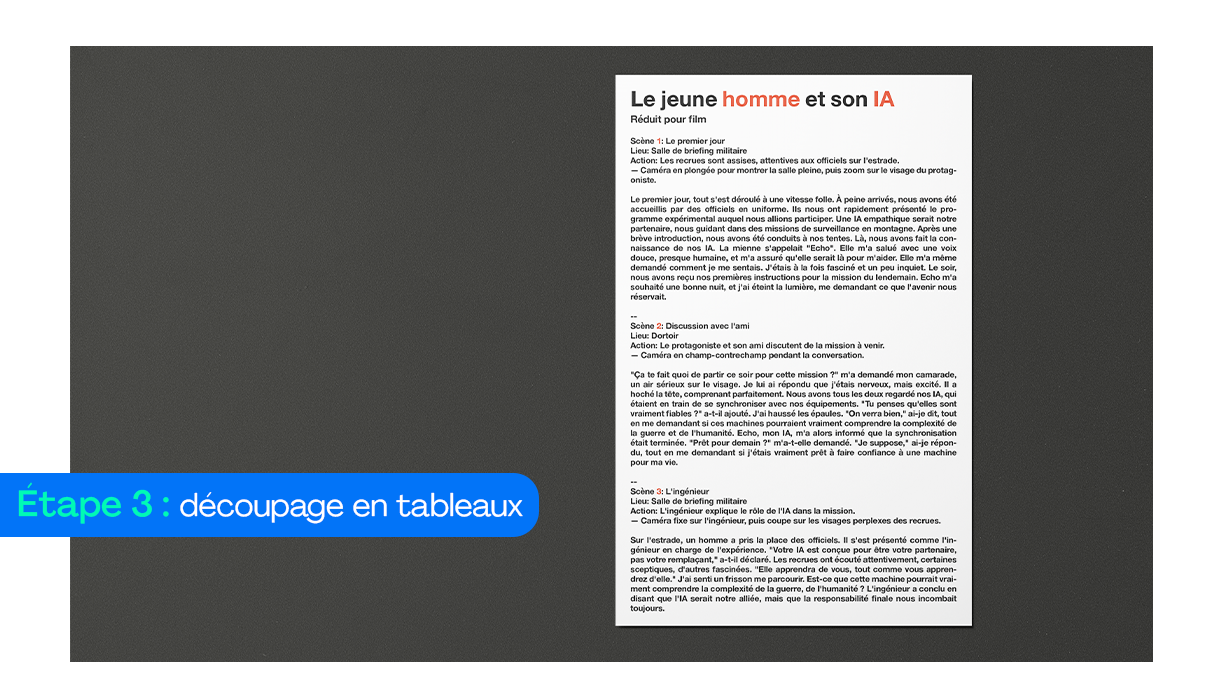 Pour réaliser la vidéo du « Jeune homme et son IA », nous avons avancé par étape.