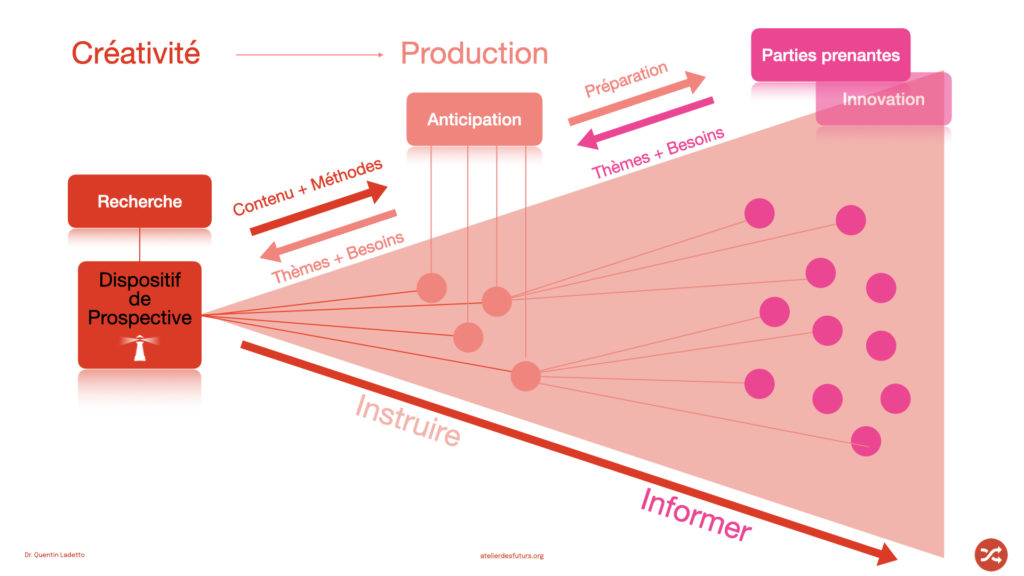 Toute organisation, de par les impératifs opérationnels vit majoritairement dans le présent; il est cependant primordial que la pensée prospective puisse être appelée au bon endroit, au bon moment. Cela peut être lors de réflexions sur de nouveaux produits, de nouveaux marchés, sur de nouvelles compétences à acquérir.