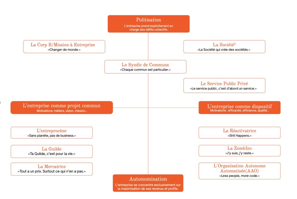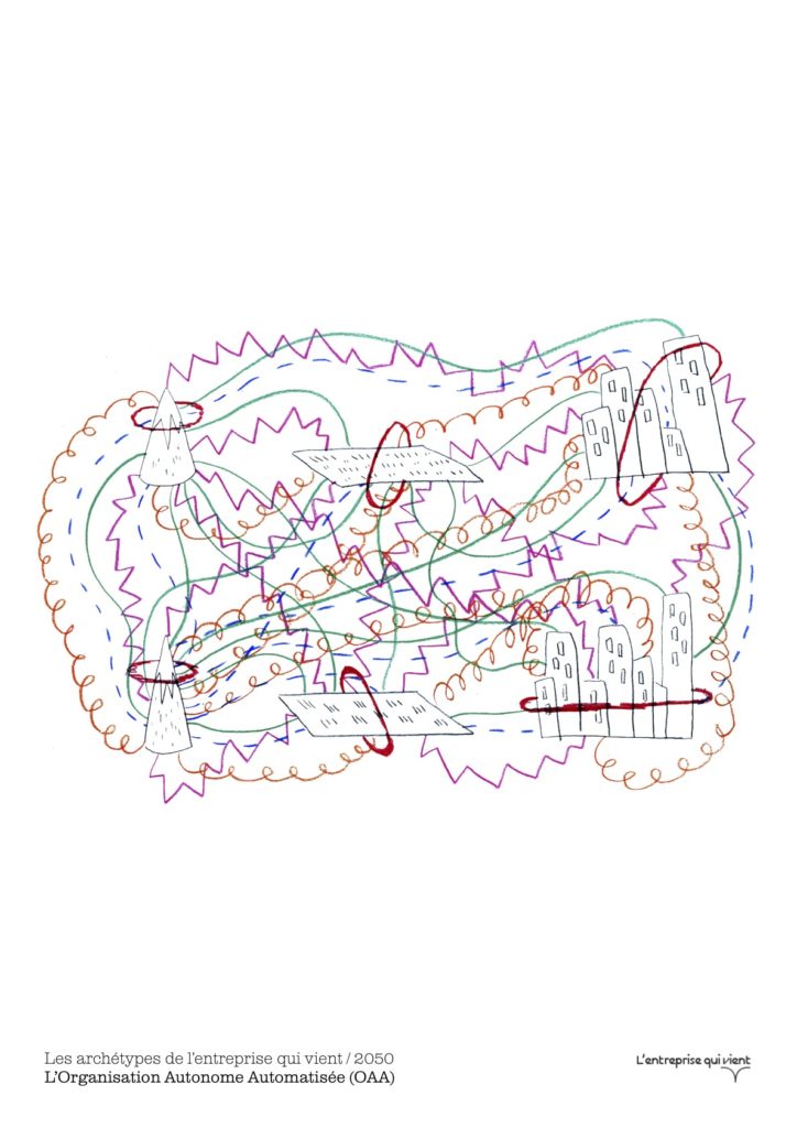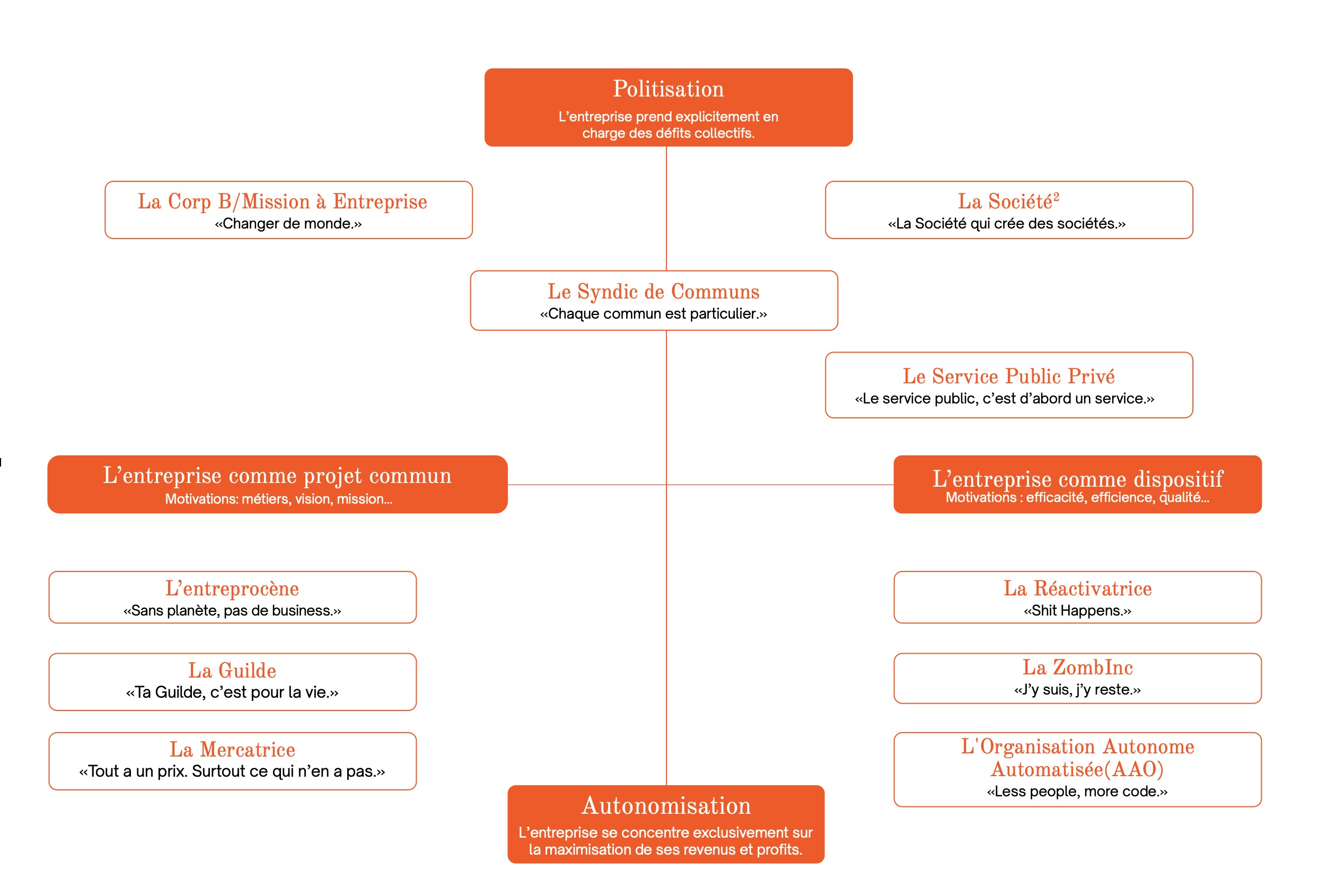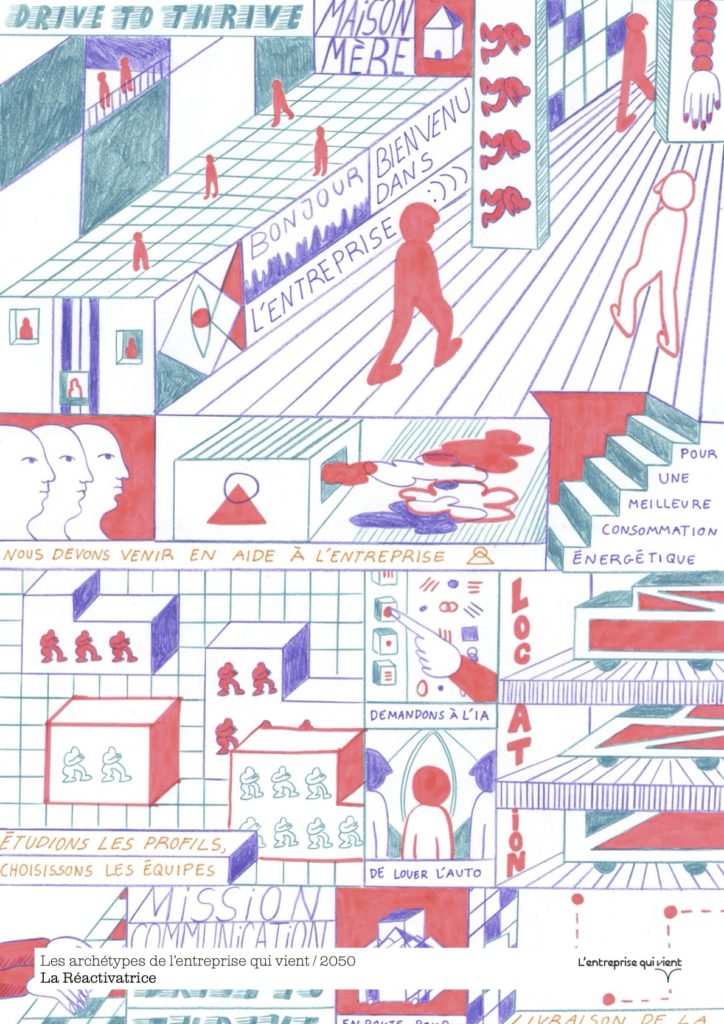Ce sont trois des dix « archétypes » d’entreprises de 2050 issus du projet L’Entreprise Qui Vient, piloté par le Réseau Université de la Pluralité avec Daniel Kaplan, Ingrid Kandelman et Philippe Hagmann. Un projet qui a mobilisé plus de 140 personnes dans 40 entreprises, un syndicat et plusieurs écoles de gestion, avec l’aide de cinq écrivain·es de science-fiction (Sophie Coiffier, Catherine Dufour, Li-Cam, Alex Nikolavitch et Ketty Steward).