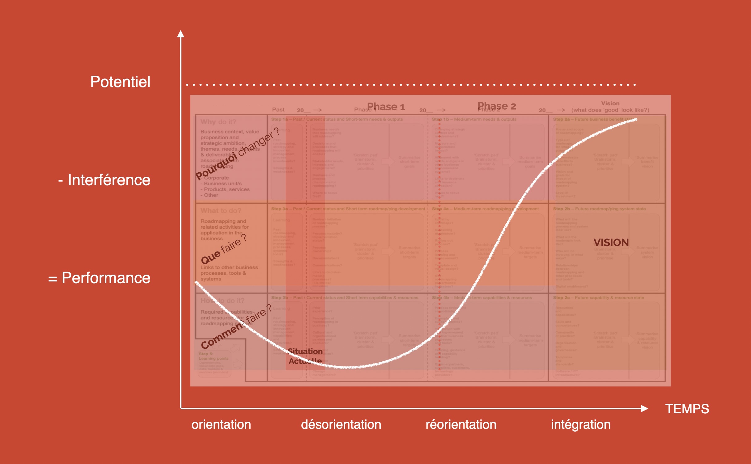 De son côté, un travail de prospective porte souvent en soi les prémices d’un changement venir. Le passage à l’action reliant le pourquoi changer au comment changer et intégrant le paramètre temporel se conçoit parfaitement à l’aide du roadmapping.