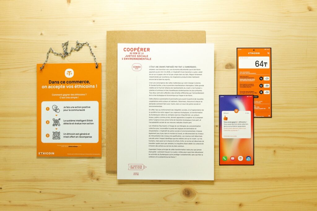 À travers trois scénarios de design fiction — autour de la souveraineté industrielle, de la justice socio-environnementale et de la gestion des « communs négatifs » — co-construits avec des acteurs de la région de Dunkerque, VFP trace des lignes de fuite possibles pour une économie plus solidaire et soutenable.