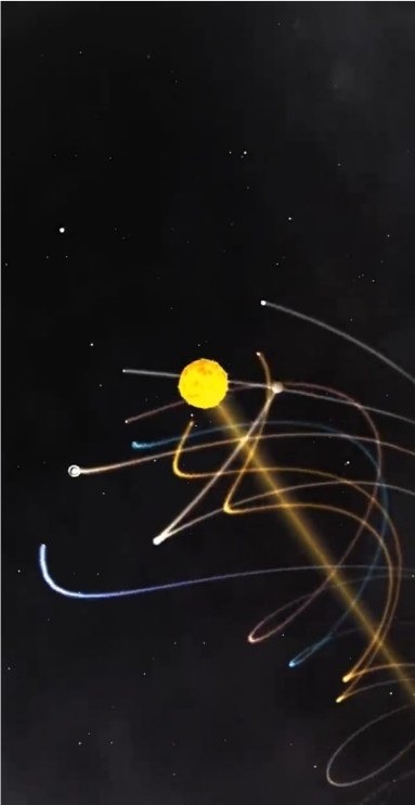 Plouf ! Un vague caillou qui, j’espère, éclabousse en spirales et volutes: d’eau et de lumière, et non de pétrole. Danse du système solaire mathématiquement et géographiquement parlant dans le cosmos, reflets d’ADN, de pensées et d’univers vivants. Relents d’atroces guerres, réelles, ou à bas bruit, non.
