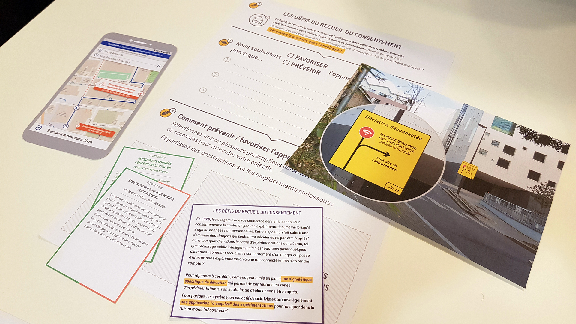 Un des scénarios de design fiction venant crash-tester les défis du recueil du consentement à la captation par une rue intelligente, de la déviation déconnectée…